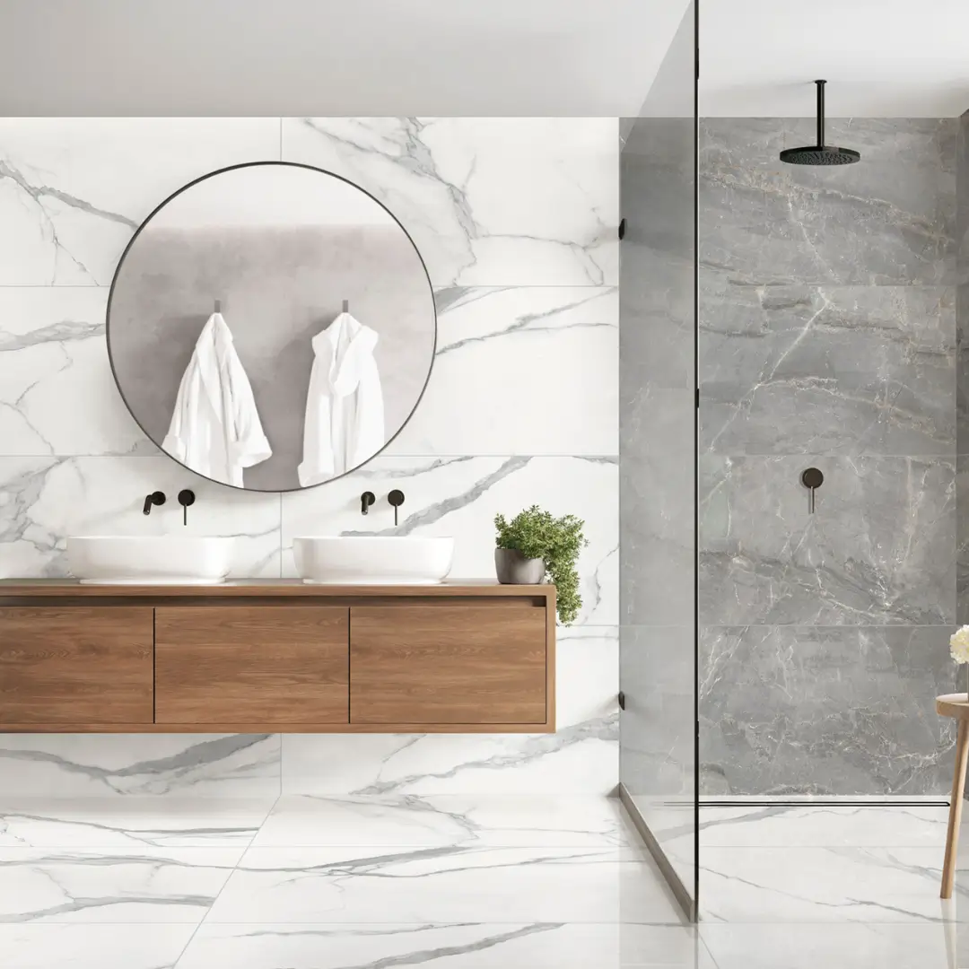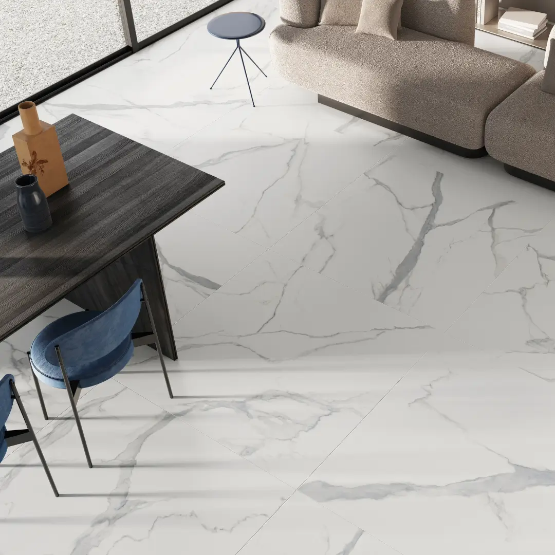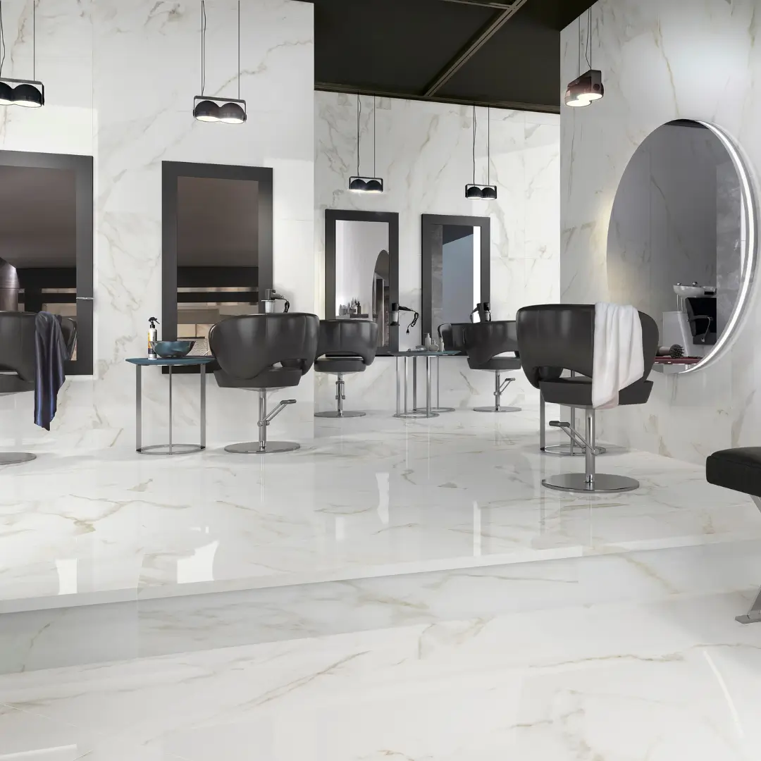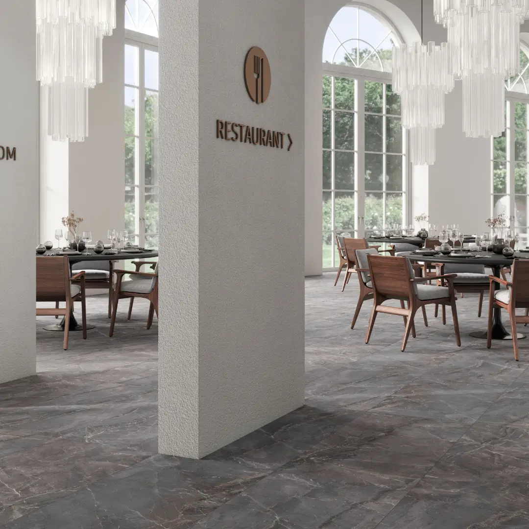 We offer a variety of porcelain tiles, including Bestone, Grunge, Heritage. For high-traffic areas like kitchens and hallways, we recommend using matte porcelain tiles for slip resistance. Porcelain tiles are a great choice due to their water resistance. Polished porcelain tiles are perfect for living rooms and spaces where a luxurious look is desired.