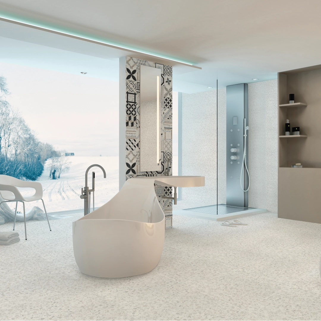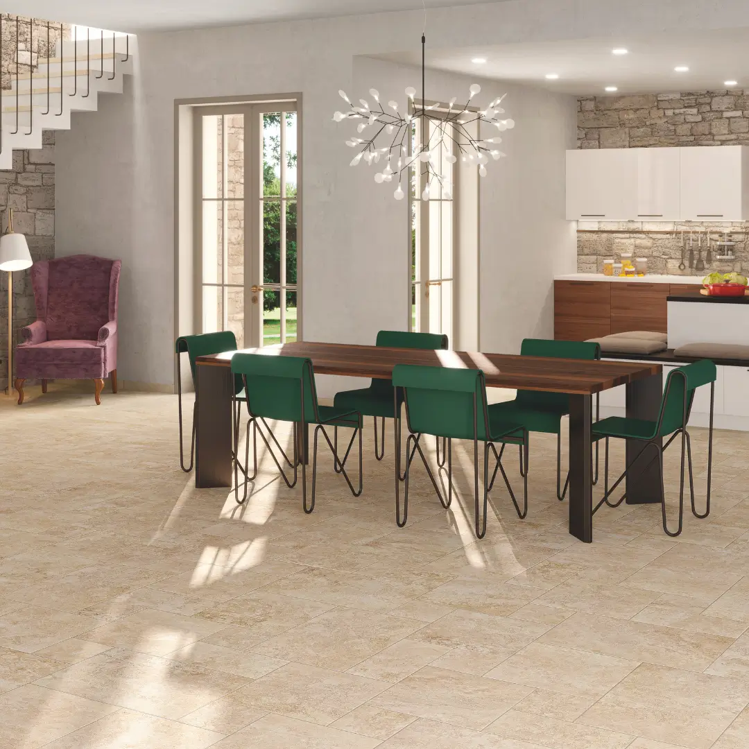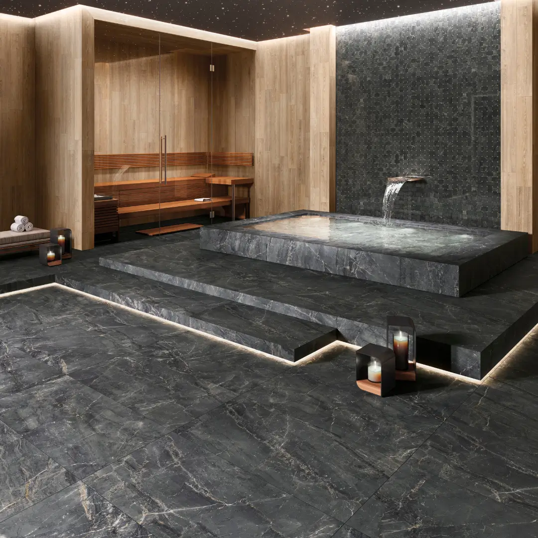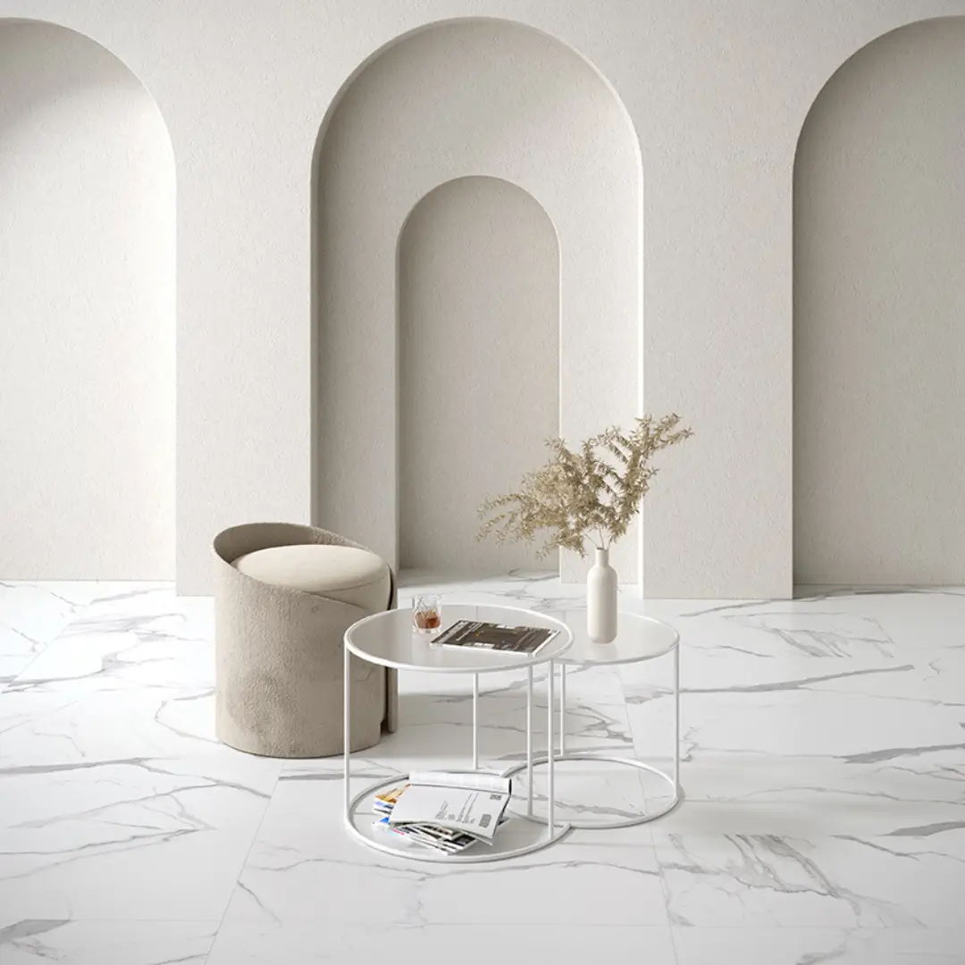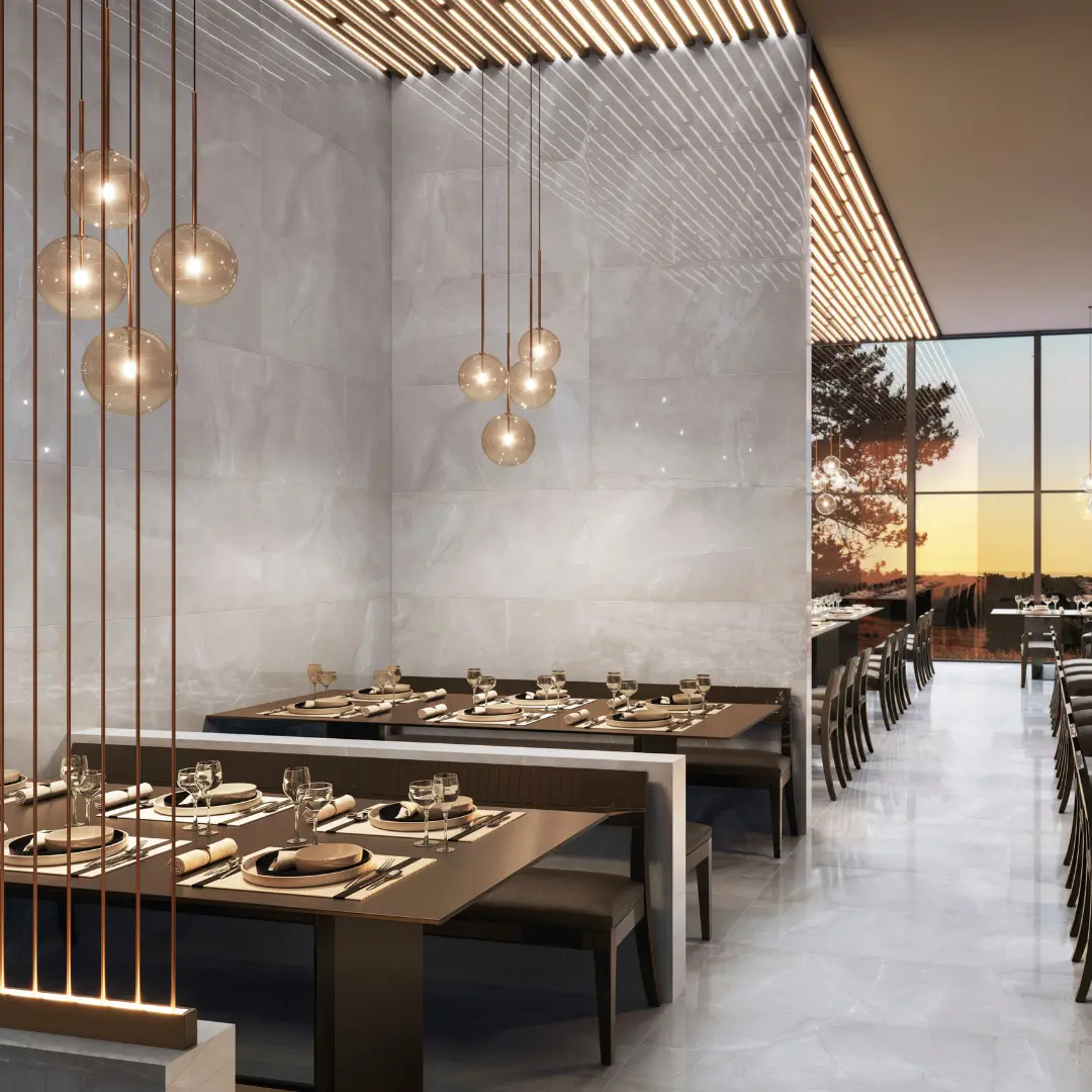 We offer a variety of porcelain tiles, including Bestone, Grunge, Heritage. For high-traffic areas like kitchens and hallways, we recommend using matte porcelain tiles for slip resistance. Porcelain tiles are a great choice due to their water resistance. Polished porcelain tiles are perfect for living rooms and spaces where a luxurious look is desired.
