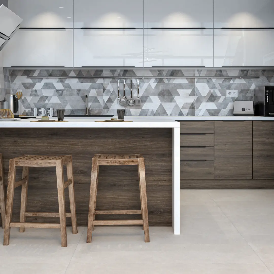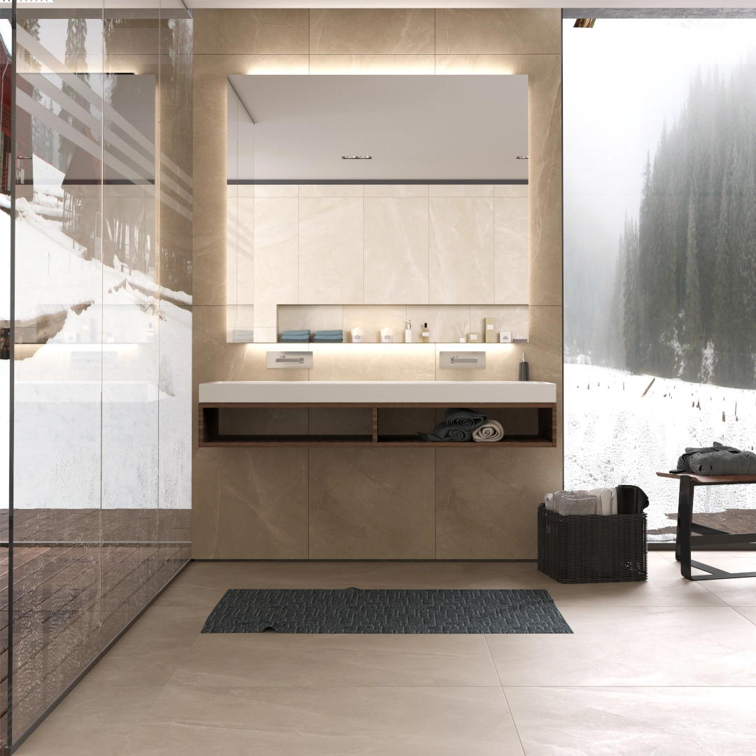 We offer a variety of porcelain tiles, including Bestone, Grunge, Heritage. For high-traffic areas like kitchens and hallways, we recommend using matte porcelain tiles for slip resistance. Porcelain tiles are a great choice due to their water resistance. Polished porcelain tiles are perfect for living rooms and spaces where a luxurious look is desired.