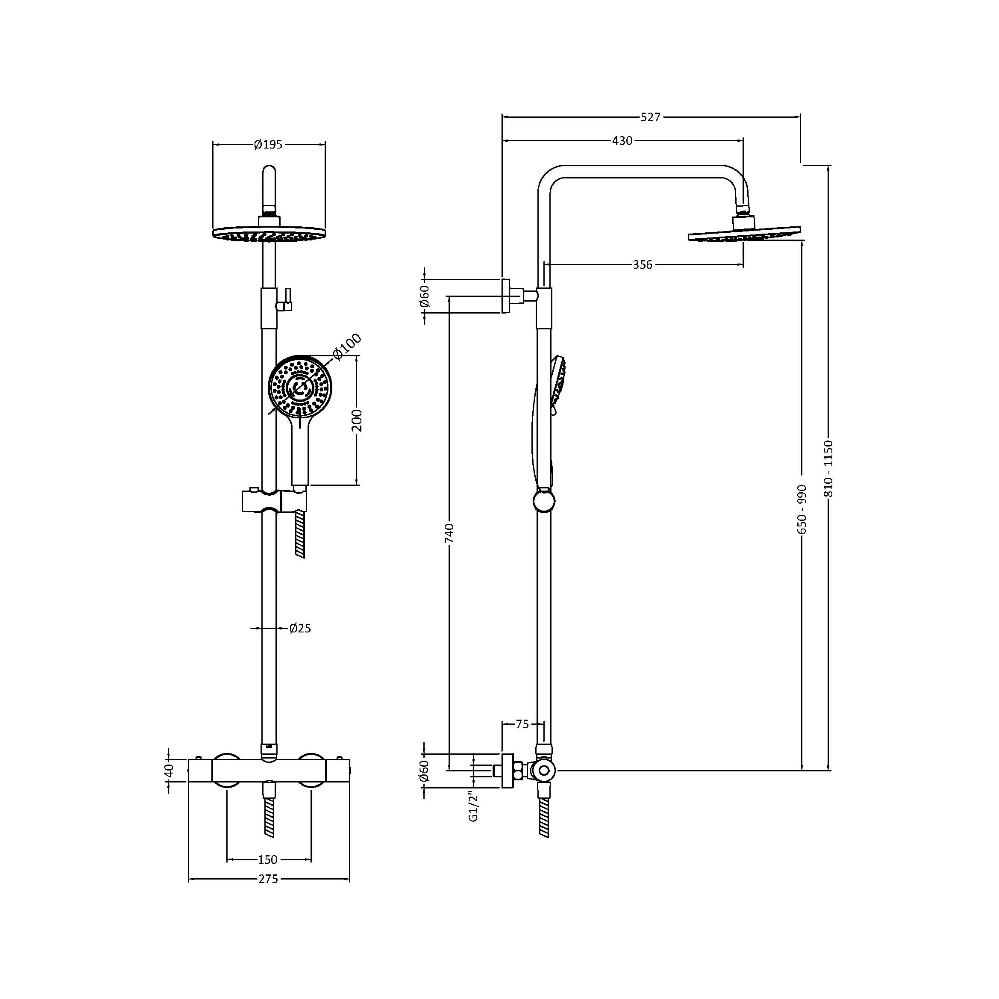 Round Thermostatic Bar Shower