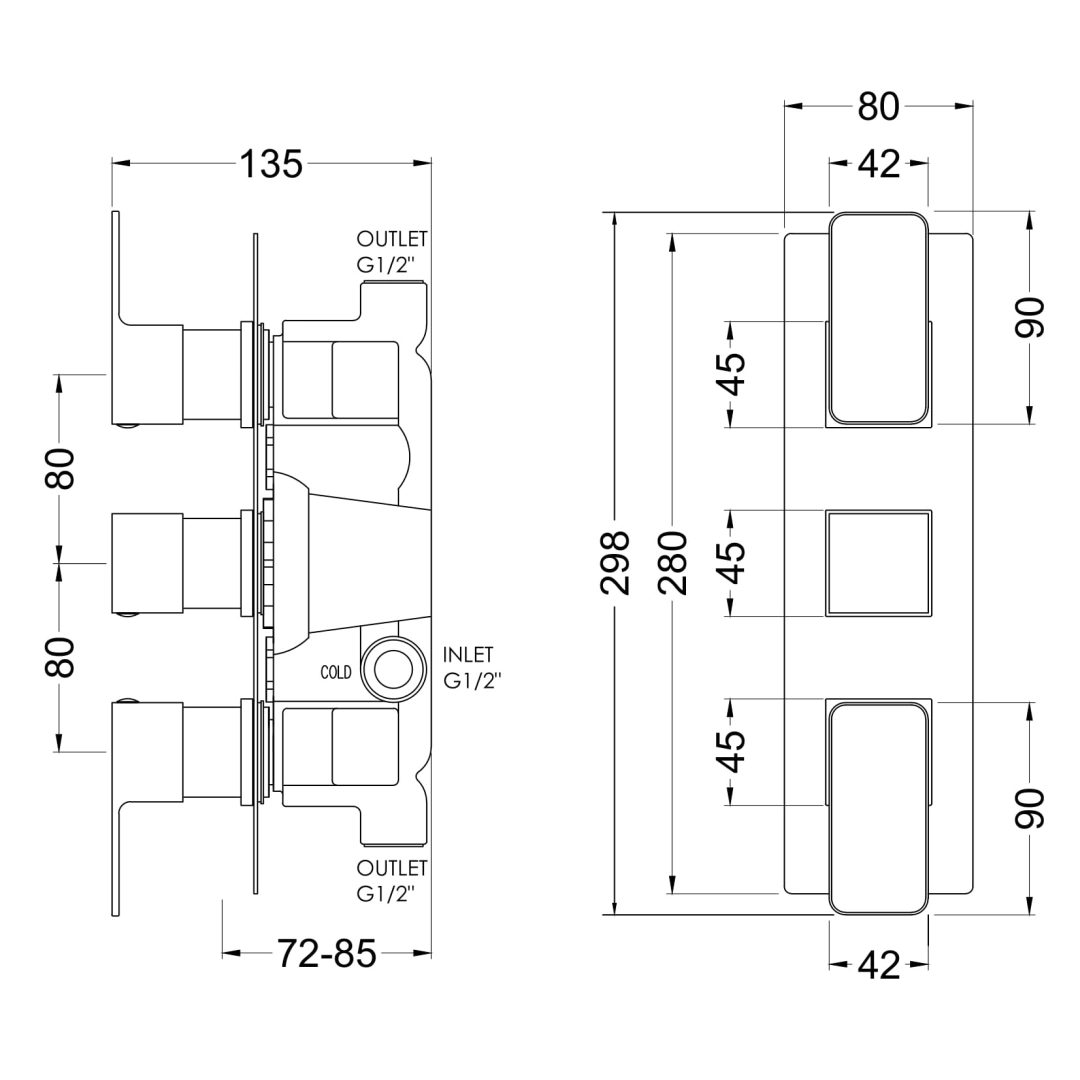 The Two Outlet is a versatile and stylish solution for your bathroom, allow you to easily control water flow to two separate fixtures, such as a showerhead and a bath filler. Designed with simplicity in mind, it seamlessly blends into any modern or traditional bathroom, offering both practicality and elegance.